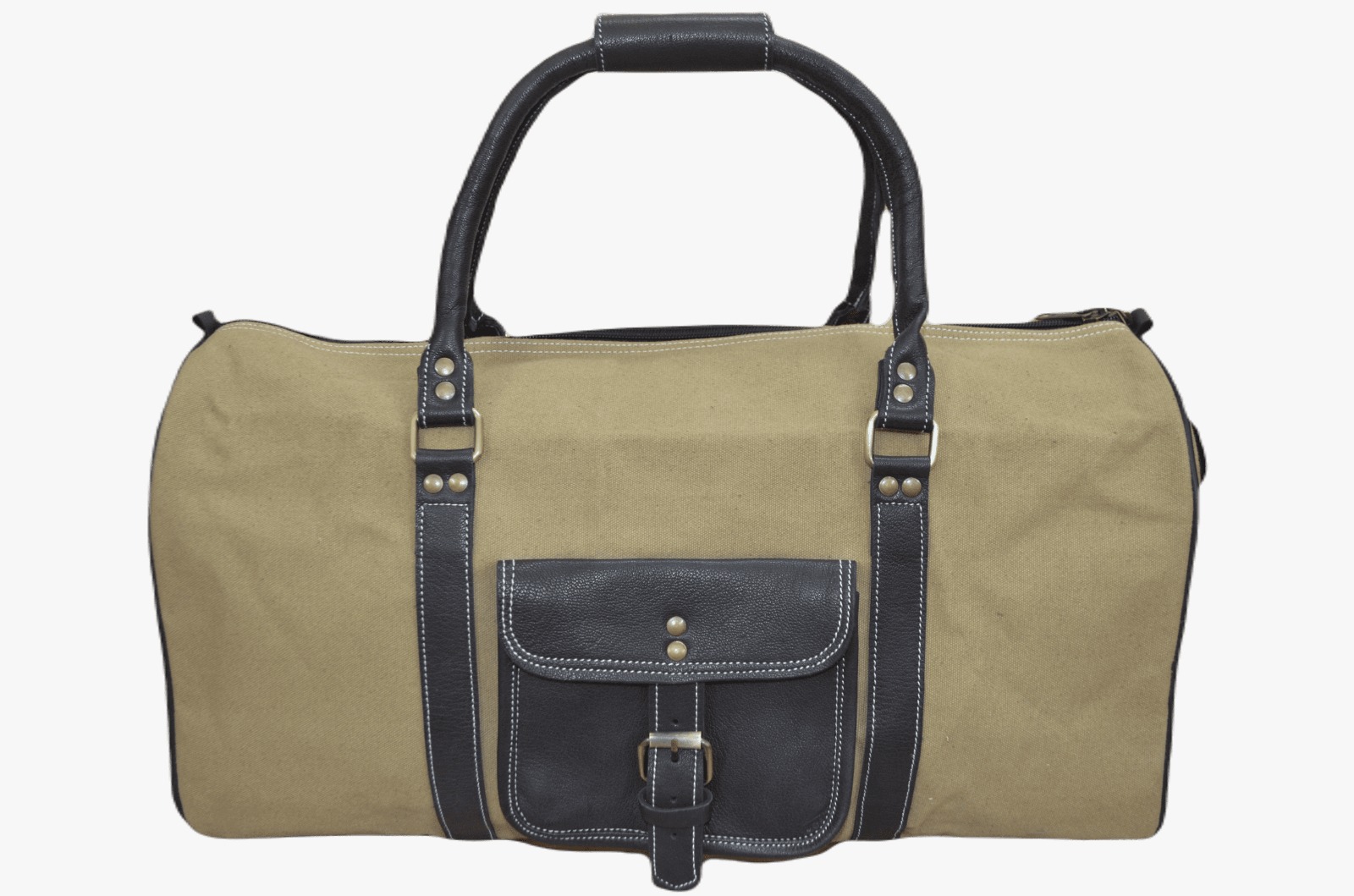 Canvas+Leather Oval Duffel Bag White Stitches Olive Black