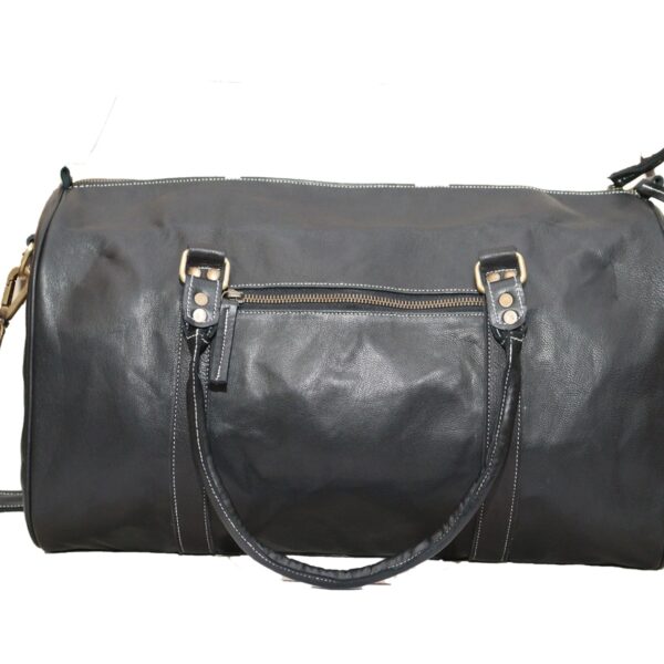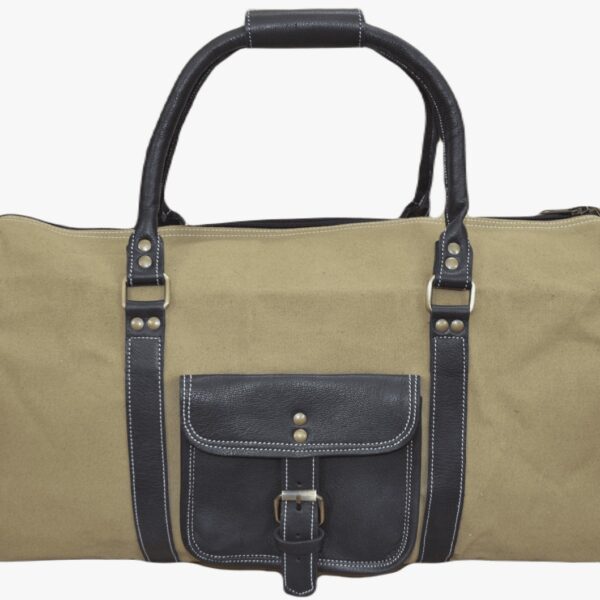 Canvas+Leather Oval Duffel Bag White Stitches Olive Black